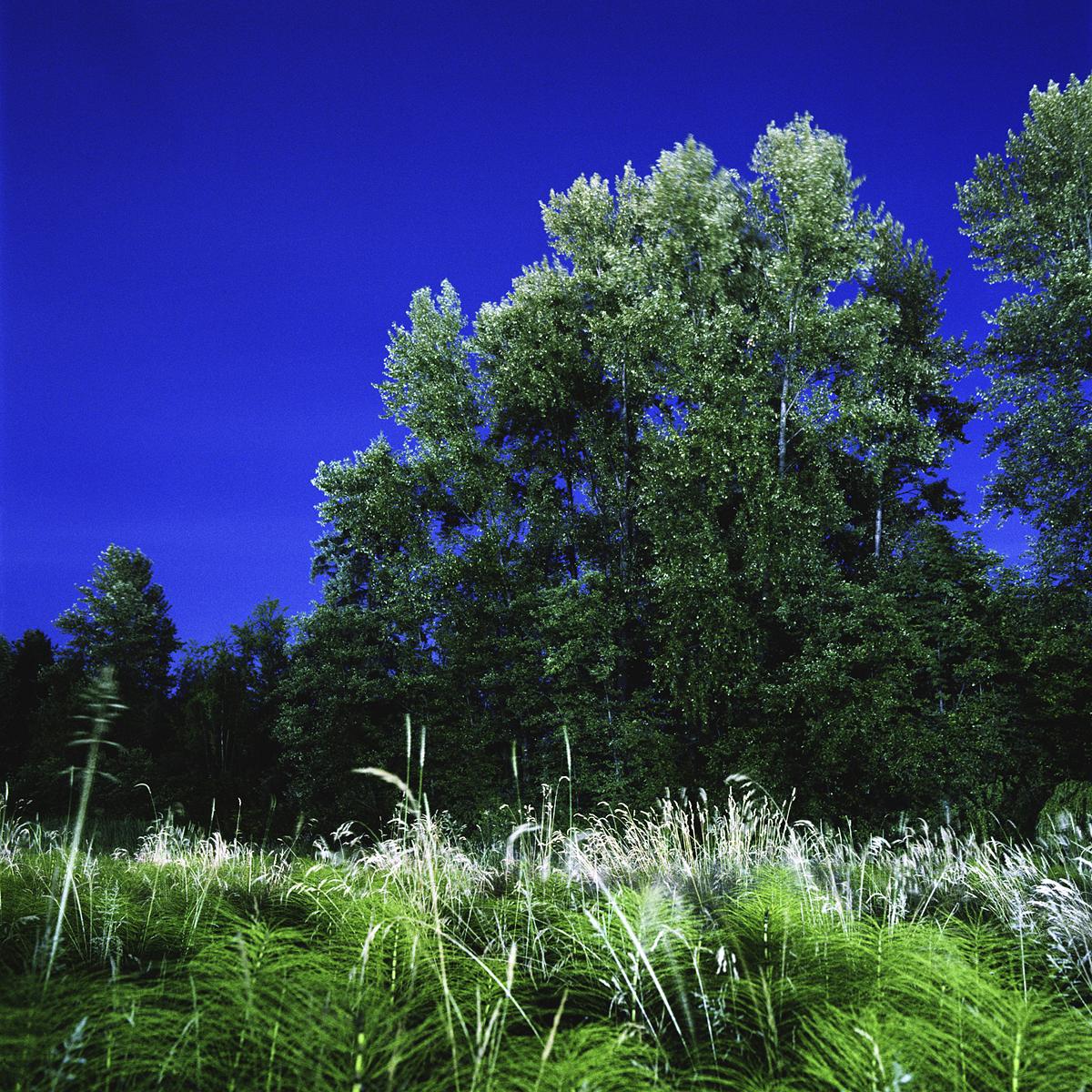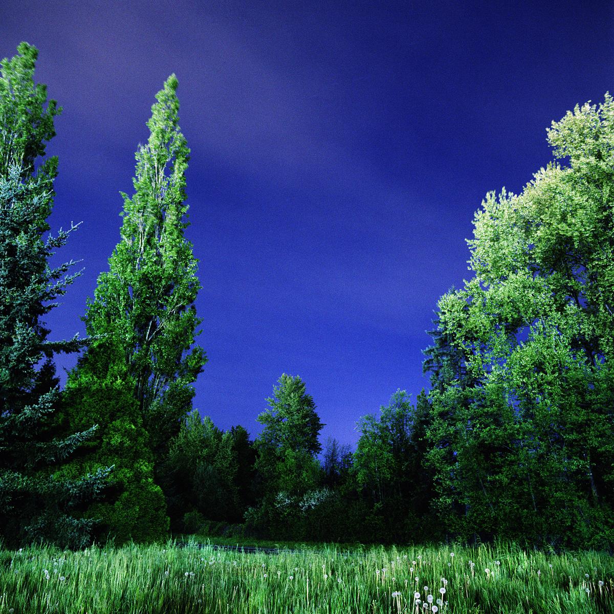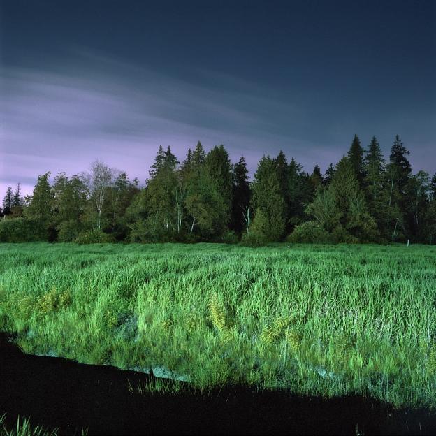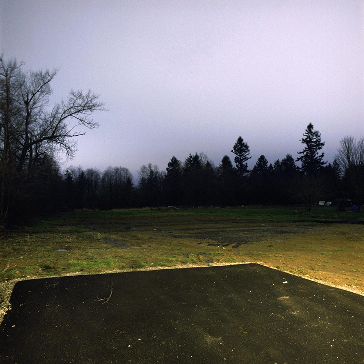 The crepuscule images have an “uncanny” presence to them, in the Freudian sense of the word as unsettlingly familiar. They are an attempt to see the strange world we create but fail to perceive because of its familiarity. The landscape beyond the wash of street lamps, buildings and car headlights has come to exist as a backdrop, registering in our minds only as “tree”, “thicket” or “field”. The relative darkness of these areas is left unexplored for its lack of interest. We are creating a world where darkness is becoming a misnomer, and twilight hangs over us like an uneasy blanket of sleep.