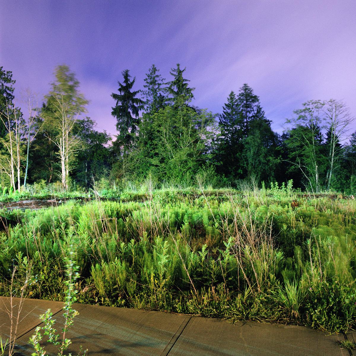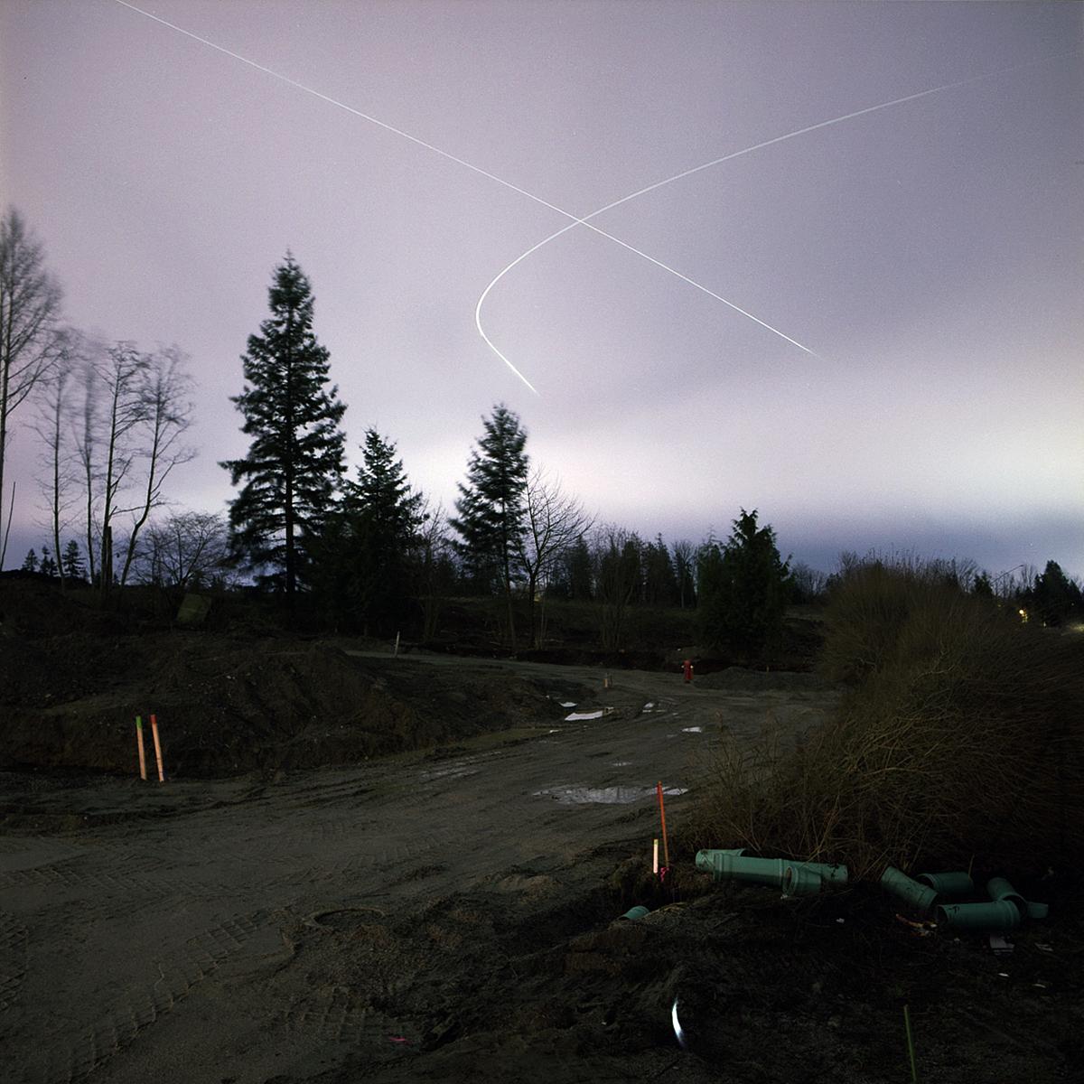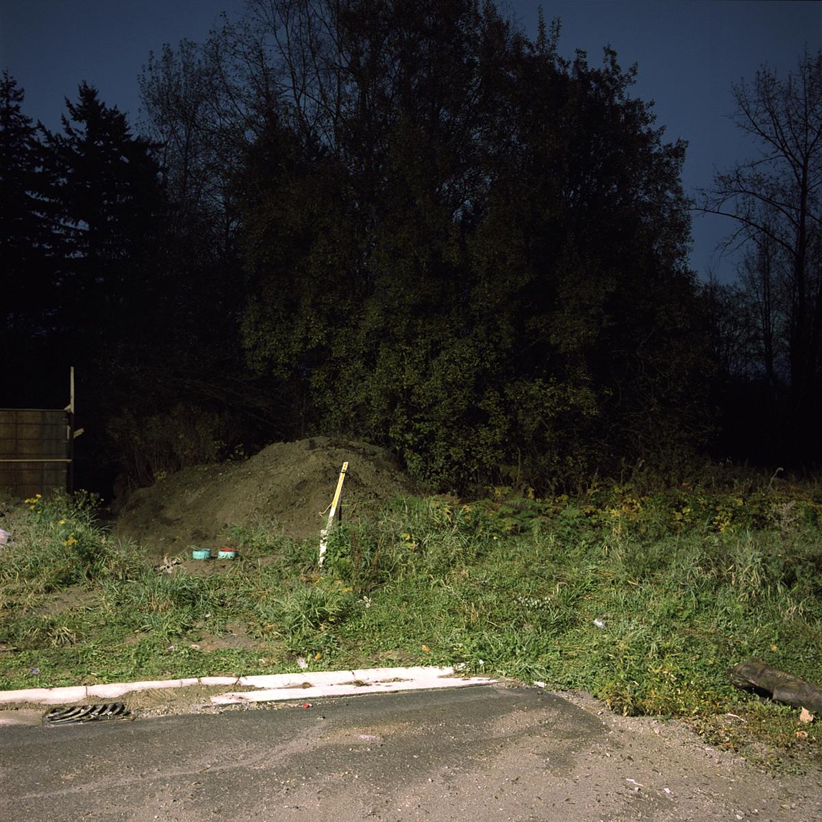 All of the work in the on going series Crepuscule is photographed at night using available ambient light. It is under cover of darkness that I am able to document locations where the natural landscape is illuminated by artificial light from various sources. These locations exist primarily in areas of contained, sparse, or fringe development, where the boundary between the natural landscape and human settlement is fraught with tension.