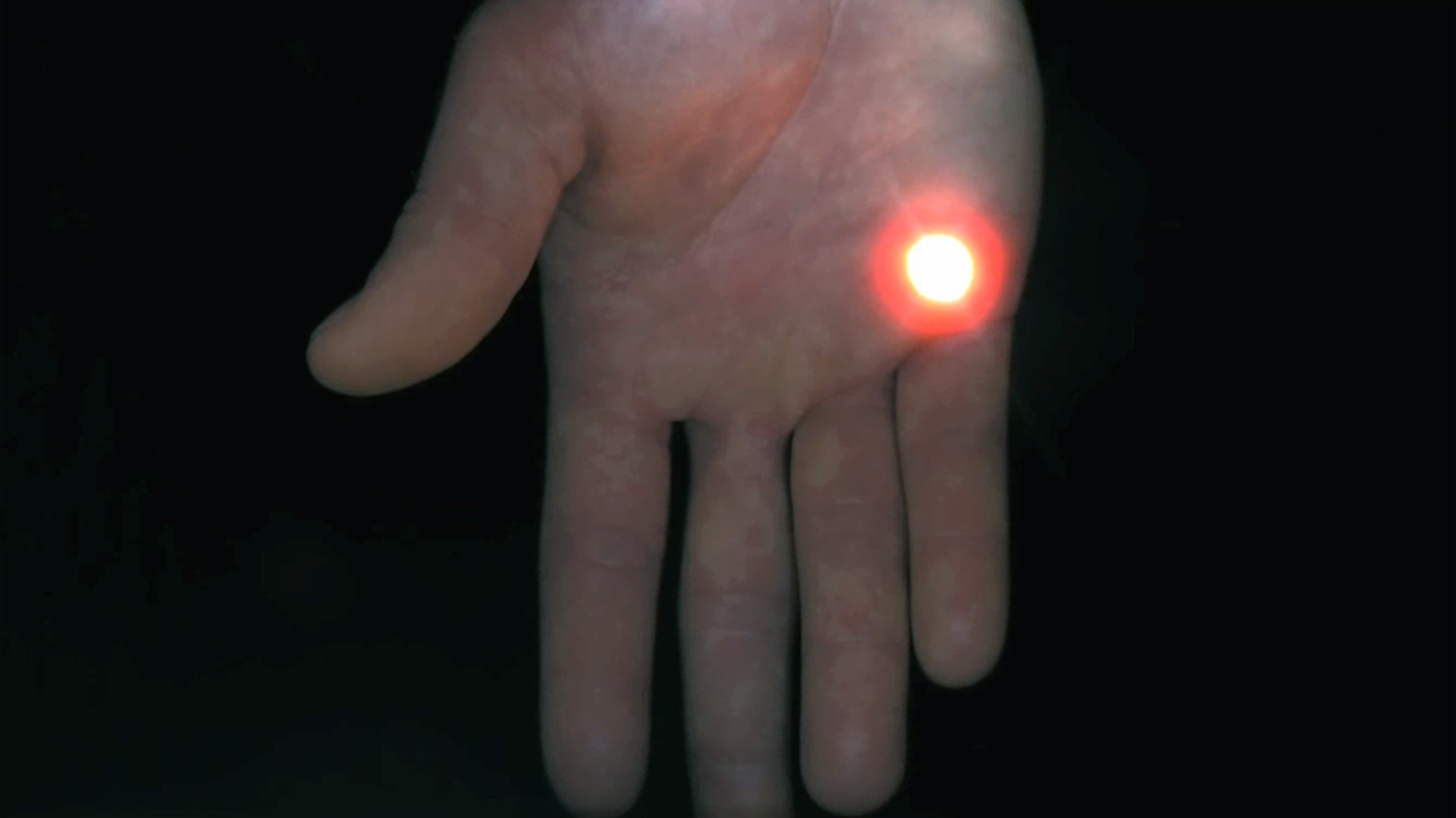 My own torture box also creates an environment of pain using the concentrated rays of our sun. Focused through a magnifying lens, this disc of hot light slowly makes its way across the width of my palm, taking 1 hour, 21 minutes, and 3 seconds. In this time, the earth has traveled 145,071 kilometers around the sun, rotating at 1676 kilometers per hour. The unremarkable daily journey of our movement made manifest.